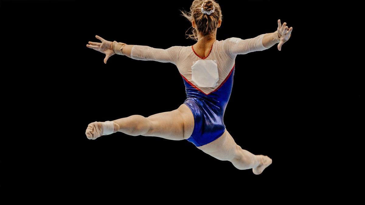 How does this appear in gymnastics? When athletes hurl themselves into the air to perform a flip, the only force acting on them is gravity. But since gravity only affects their “center of mass,” it cannot apply forces in a way that changes the athlete’s spin. But the gymnasts can do that for themselves by using the conservation of angular momentum.