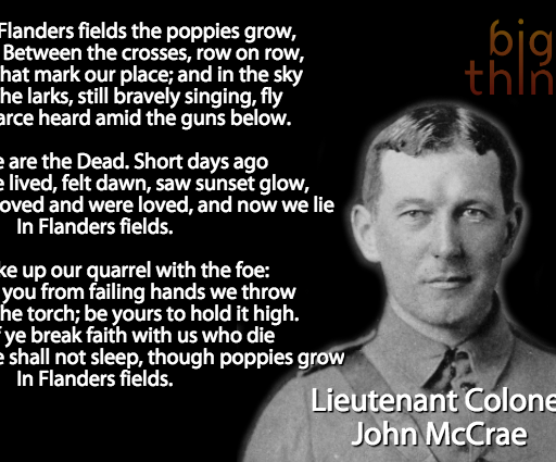 Canadian physician Lt. Col. John McCrae composed this poem after presiding over the funeral of a friend killed at the 2nd Battle of Ypres in 1915.