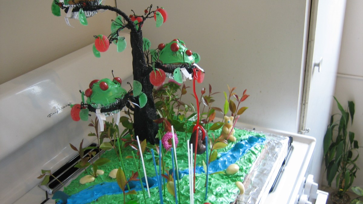 Chocolate cake with creamy chocolate frosting and walnuts with whipped cream and vanilla ice cream with sprinkles, add some syrup and gum drops, don’t forget a little caramel too, put on a few cherries, maybe even a dollop of peanut butter, let’s not forget some coconut sprinkles and pour on some creme de cassis….and on and on.