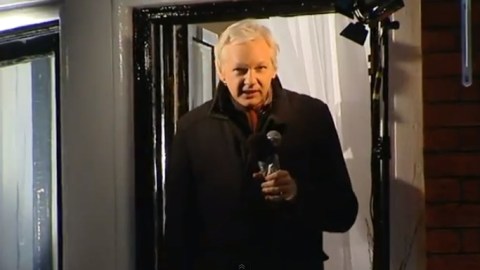 Making a rare appearance on the balcony of Ecuador’s London embassy where he has spent the last six months, Julian Assange lashed out against “war criminals,” a corrupt media and “timid” academics. Assange also took the opportunity to salute Bradley Manning, jailed journalists and others “whose fates are linked to mine.”
