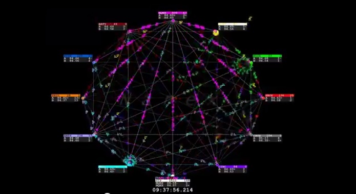 Each box represents an exchange that has orders behind and which then sends orders to a consolidated feed where the information is processed. As you will notice, it is hard to keep up with what is going on here, even at the millisecond level.