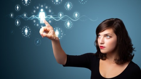 image: Businesswoman pressing modern social buttons / Shutterstock