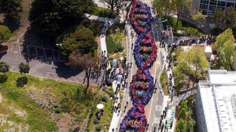 Over 2,600 employees from the San Francisco headquarters of Genentech celebrated the anniversary of the discovery of DNA by forming a human DNA strand reportedly the world’s largest ever.