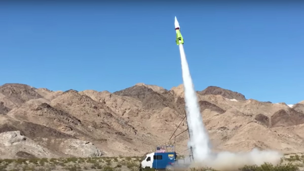 But “Mad” Mike Hughes showed them all on March 24 near Amboy, California when he climbed into the $20,000 rocket he had built in his garage, launched upward at speeds around 350 mph, reached 1,875 feet, pulled one parachute, then another, and finally fell back to Earth, landing with a thud that left him with an aching back and his rocket with a split nose.