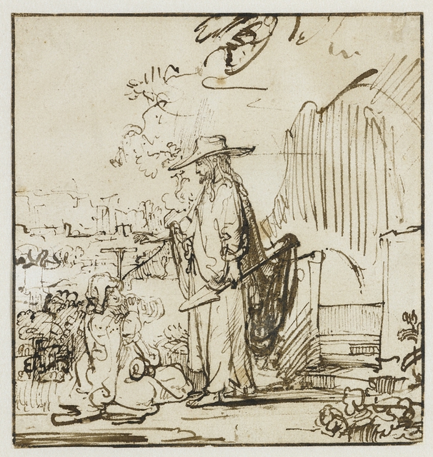 [Image: Rembrandt, Dutch, 1606–1669. Christ as a Gardener Appearing to Mary Magdalene, about 1640. Pen and brown ink, corrections with white gouache, indented for transfer. 15.4 x 14.6 cm (6 1/16 x 5 3/4 in.) Amsterdam, Rijksmuseum, Gift of Mr. and Mrs. De Bruijn–Van der Leeuw, 1949; EX.2009.1.62. Courtesy of The J. Paul Getty Museum.]