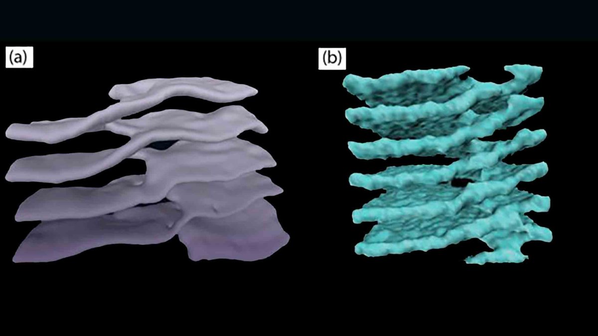 “They see a variety of shapes that we see in the cell,” Huber elaborated. “We see a tubular network; we see parallel sheets. We see sheets connected to each other through topological defects we call Terasaki ramps. So the parallels are pretty deep.”