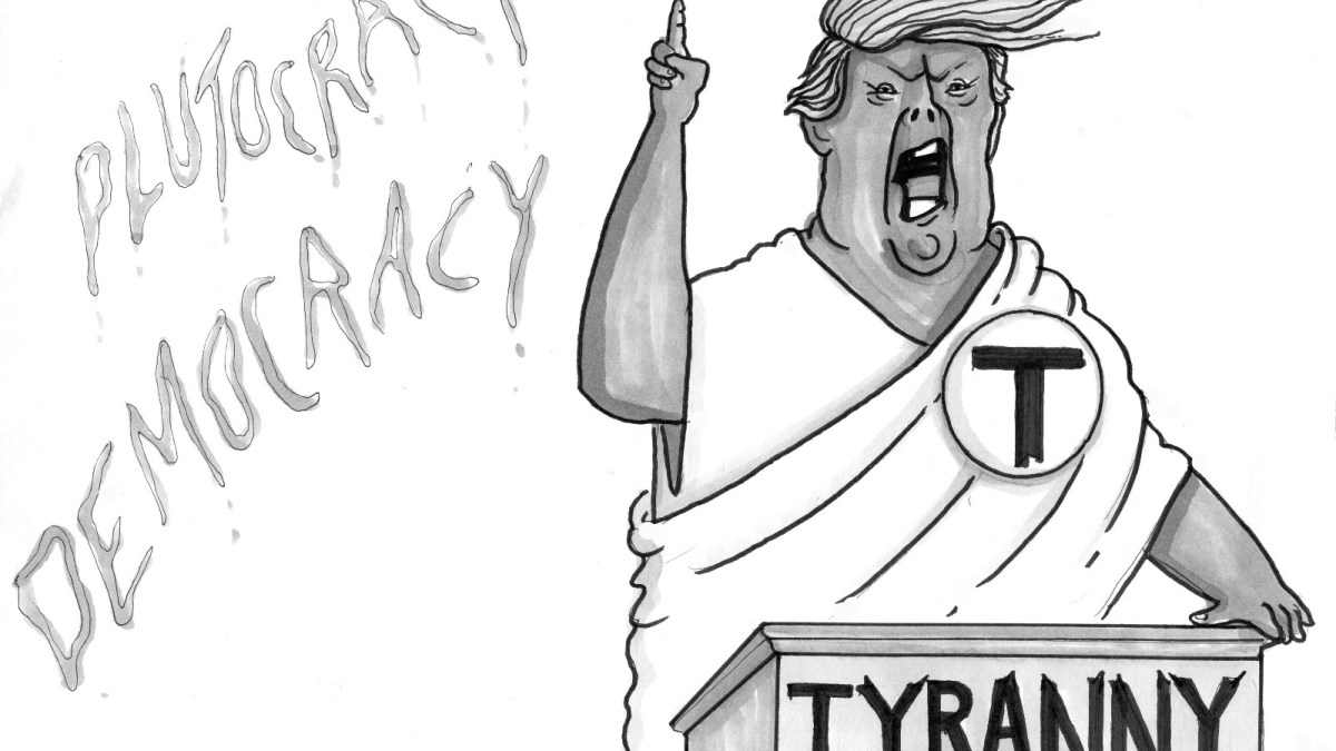 14. RNG: The degraded denizens of the city of the poor rise up in fury. Ideas of justice have long been forgotten in the long decline from the republic that, for Plato, offered the very definition of justice. It’s only this kind of democracy, driven by the swoon-inducing, wealth-worshipping values of a plutocratic oligarchy, that Plato predicts will beget tyranny. A canny politician will read the desires for material gain with cunning accuracy, since he’s in thrall to the very same desires, and, unimpeded by any inconvenient scruples, he’ll promise the people everything. Perhaps he’ll offer to teach them the art of the deal.