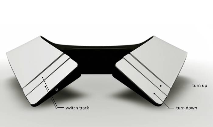 The device is customizable to fit different neck sizes via an expandable back slider. Much like an iPod remote, it features volume and scroll controls and, like a speaker system, utilizes a spatial distinction between bass, mid-range and treble.