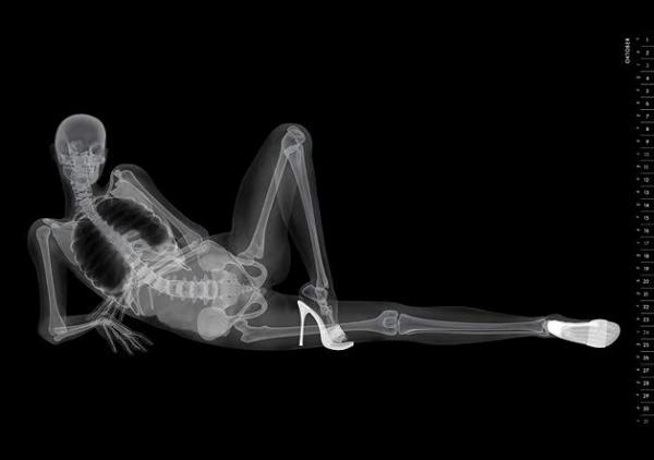 One of industrial life’s strange traditions is the pinup calendar that shows nubile young women posing provocatively around tractor parts and turbines. Eizo, a maker of medical-imaging technology, decided to promote its wares with this updated version: The models are wearing shoes and nothing else. Not even flesh. They’re X-Rays.