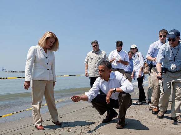It’s still not okay. The criticism of Obama is fair enough. The spill may be the product of cronyism that dates back to the Bush administration, but Obama’s Secretary of the Interior, Ken Salazar, hasn’t made good on his promise to reform the Minerals Management Service. Nor has Obama necessarily responded particularly well to the spill. You can certainly make the case, as The Economist does, that business leaders see his treatment of BP as part of an overall attack on business. And it’s true that the altered photograph doesn’t really falsify any historical event.