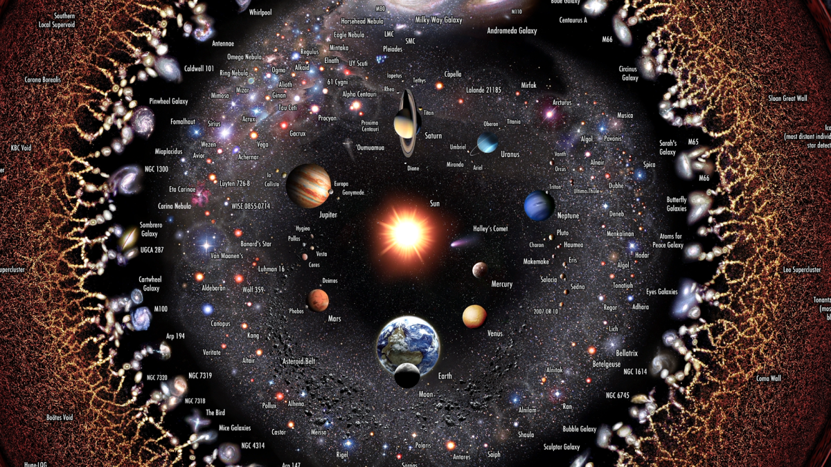 Image based on logarithmic maps of the Universe put together by Princeton University researchers, and images produced by NASA based on observations made by their telescopes and roving spacecraftImage source: Pablo Carlos Budassi