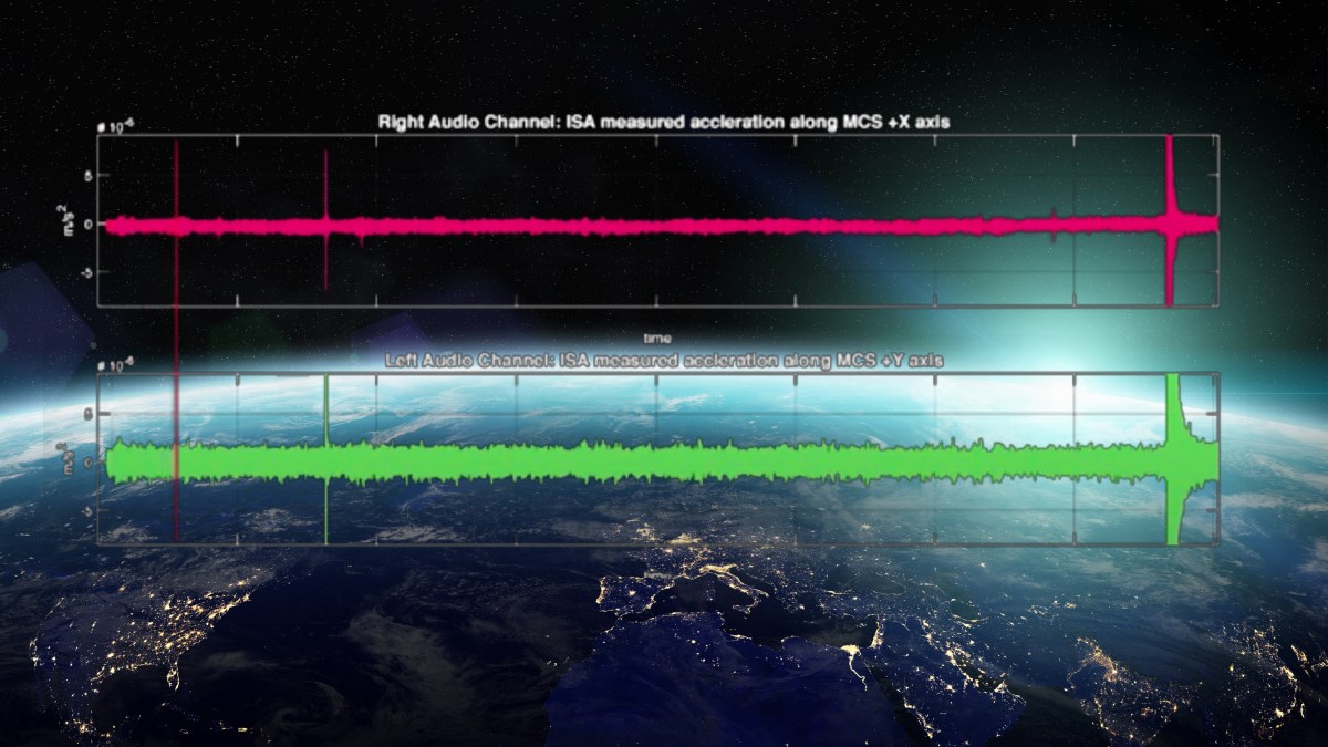 The data was captured by BepiColombo’s Italian Spring Accelerometer (ISA) instrument. Says Carmelo Magnafico of the ISA team, “When the spacecraft enters the shadow and the force of the Sun disappears, we can hear a slight vibration. The solar panels, previously flexed by the Sun, then find a new balance. Upon exiting the shadow, we can hear the effect again.”
