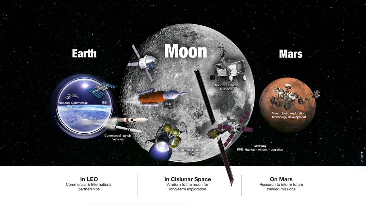 NASA this week unveiled its new plan that many are calling “bold” and other lofty adjectives, with a 10-to-20-year span, each phase of which is somewhat dependent on what is learned during the first missions. It’s certainly aiming high: it’s going into low-Earth Orbit, to the Moon and its orbit (‘cislunar’), and then on to Mars and possibly other moons and surfaces, to be precise.