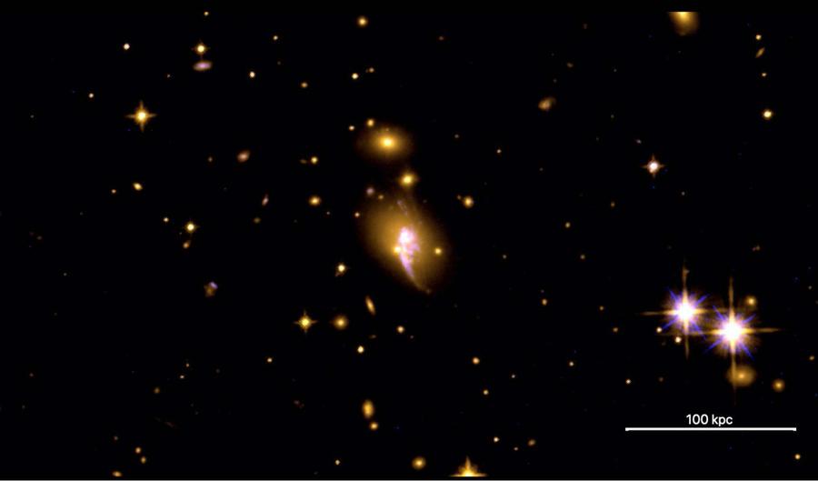 In 2012, McDonald discovered a cluster unlike any other, which shone bright like a point source in the X-ray. Its central galaxy hosts a ravenous black hole that consumes matter and spews X-rays so bright as to drown out the diffuse radiation of the intracluster medium. In its core, the cluster forms stars at a rate roughly 500 times higher than most other clusters, giving it the blue glow of a young star population instead of the typical red hue of aging stars.
