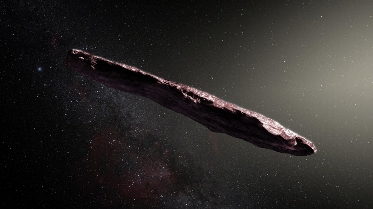 That unique trajectory is just one of the odd things about the asteroid: Its physical appearance is also surprising. Astronomers observed that it varied in brightness by a factor of ten due to spinning on its axis every 7.3 hours. “This unusually big variation in brightness means that the object is highly elongated: about ten times as long as it is wide, with a complex, convoluted shape,” according to Meech. NASA estimates that it’s “up to one-quarter mile (400 meters) long and highly elongated — perhaps 10 times as long as it is wide.”