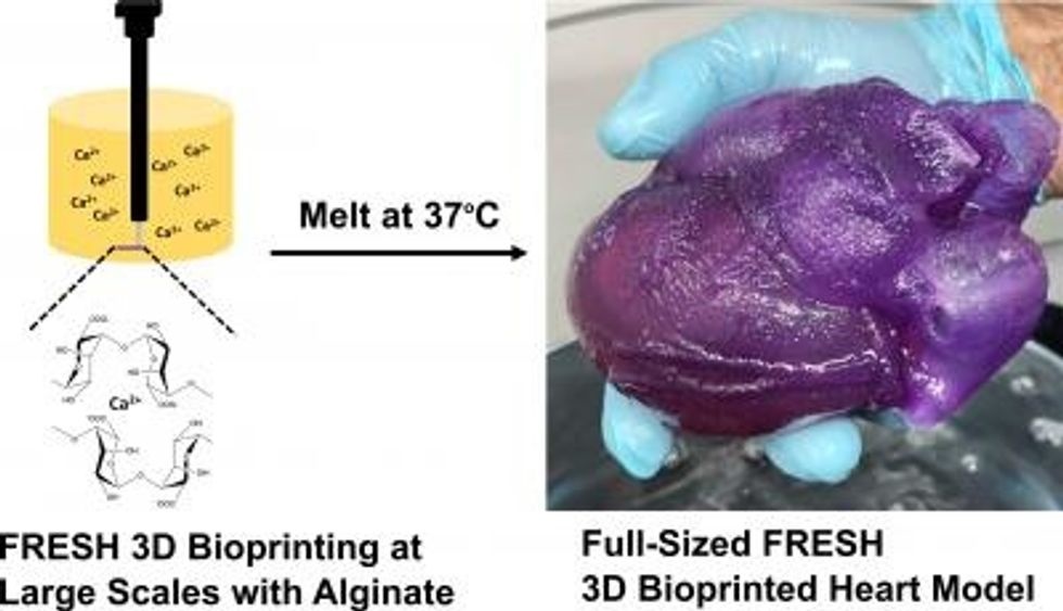 The technique, described in a paper published in ACS Biomaterials Science & Engineering, uses a specialized 3D bioprinter to print soft biomaterials in a gelatin bath of hydrogel. During the printing process, the hydrogel bath helps support the delicate organ model, preventing it from collapsing. Once printed, the team applies heat to the model, causing the leftover hydrogel to melt away.