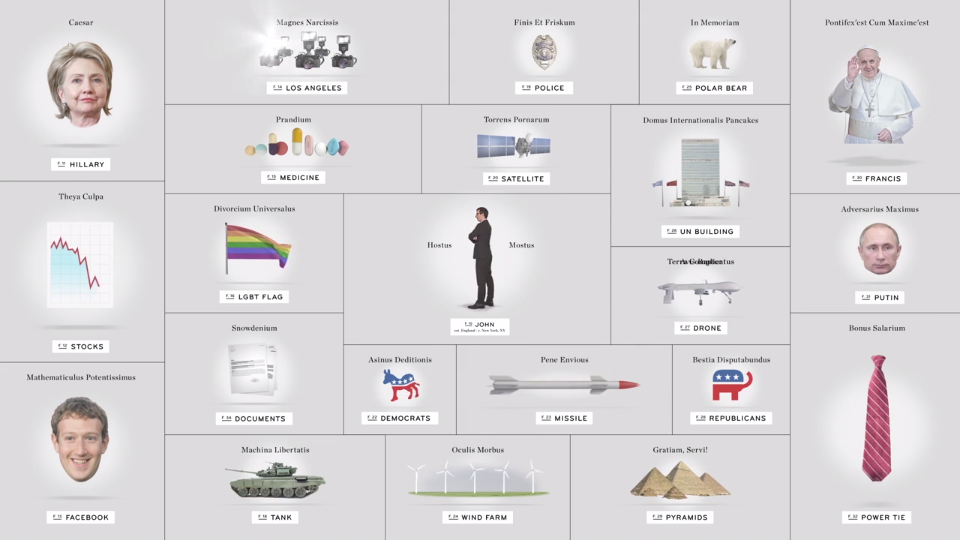 So the firm instead created a sleek, minimalistic sequence featuring a rotating suite of graphics accompanied by faux (and sometimes real) Latin labels.