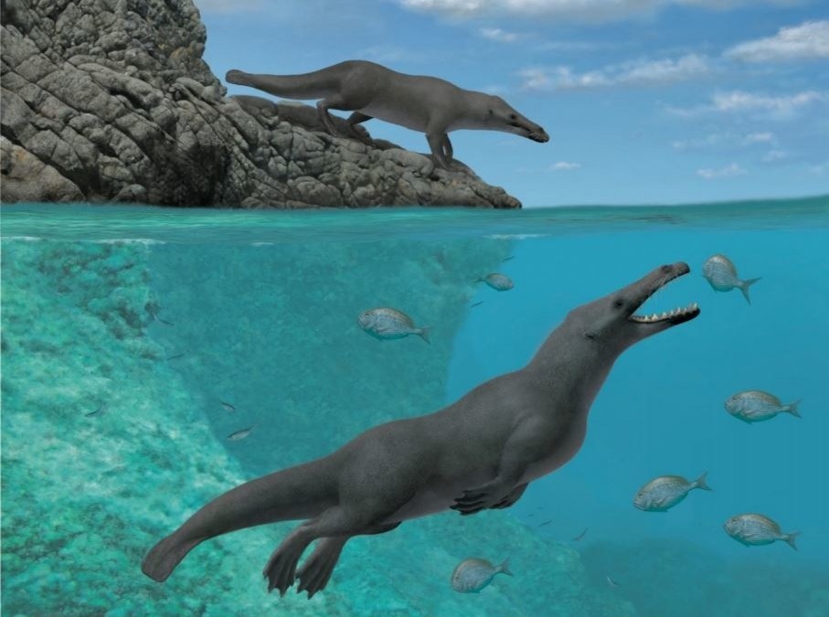 This species of whale was about four meters long and possessed small hooves, meaning it could easily walk on land if need be. Its skeletal structure suggests that it probably swam the way otters do, by undulating its body and tail while simultaneously paddling with its hind limbs.
