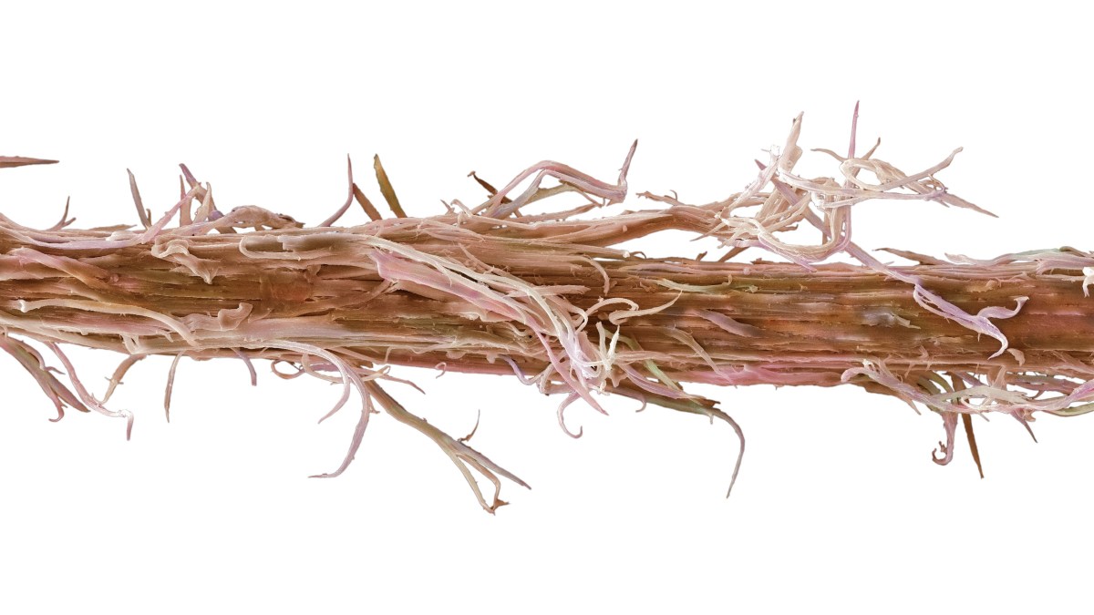 Image: Microscopic image of a damaged human hair that has been bleached and straightened.