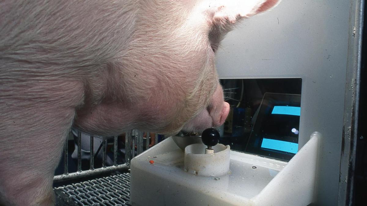 As evidence keeps mounting in support of the idea that pigs are highly intelligent—and despite some researchers viewing the species merely as a source oforgans for human transplant—there’s some compelling new evidence from scientists at the Purdue Center for Animal Welfare Science. Researchers there have taught four pigs to operate joysticks and play a rudimentary video game.