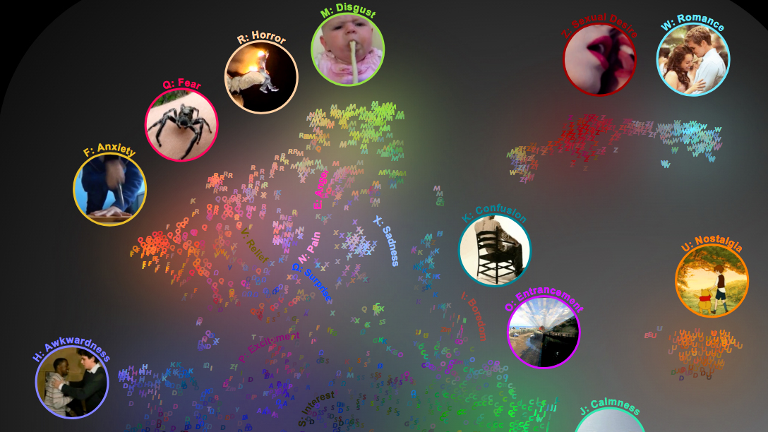 In the report, the authors write, “By analyzing the distribution of reported emotional states we uncover gradients of emotion—from anxiety to fear to horror to disgust, calmness to aesthetic appreciation to awe, and others.”