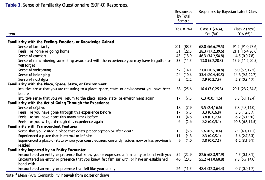 - Slightly more than 20% of participants said they encountered an entity with whom they perceived having some sort of prior relationship or bond. 11.5% said this entity felt like family.