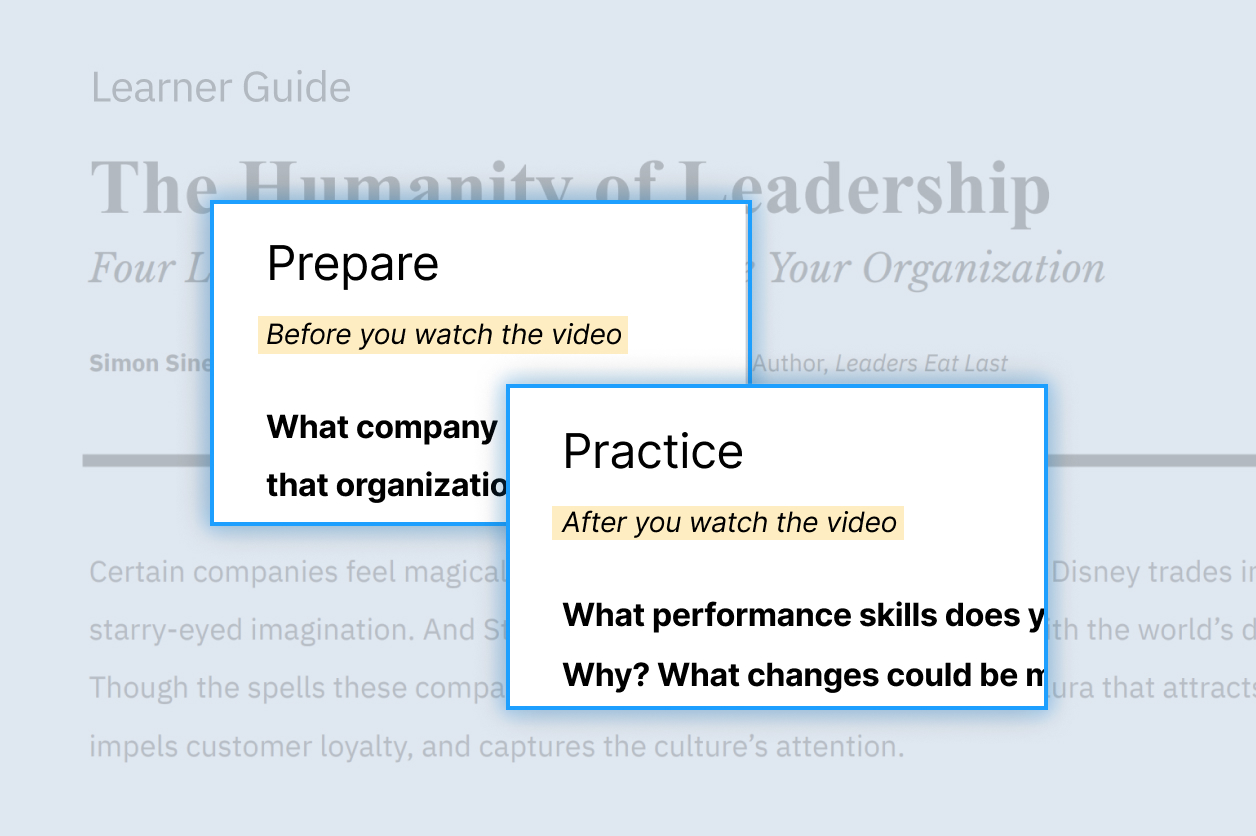 Every video lesson within the Big Think+ Library includes a Learner Guide designed to allow employees to put their insights into action immediately.