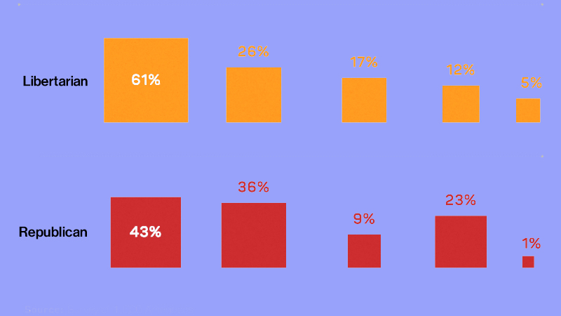 The first most obvious problem with our judicial system is the uneven way it’s applied to those outside the white upper-middle classes. Addiction Now asked respondents about the degree of racial discrimination they see in sentencing and sorted their answers by their race and their political party affiliation: Democrat, Independent, Libertarian, and Republican. Next, they asked about socio-economic bias, again sorting the response racially and then by party.