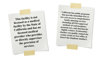 The law, passed in 2015, required anti-abortion pregnancy centers to display a notice in waiting rooms that reads, “California has public programs that provide immediate free or low-cost access to comprehensive family planning services, prenatal care and abortion for eligible women.” It also required unlicensed pregnancy centers to inform clients that they aren’t licensed medical providers.