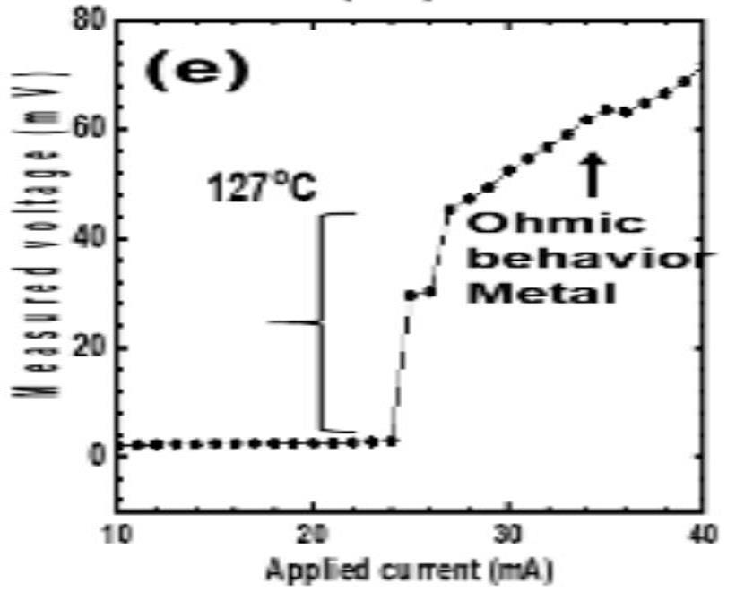 This figure, extracted and horizontally stretched from the second of Lee and Kim’s papers on LK-99, clearly shows that the voltage across their sample, below a certain value of applied current, doesn’t drop to zero, but rather drops to a small, positive, non-zero value: evidence that this is behaving only as a conductor, not as a superconductor.