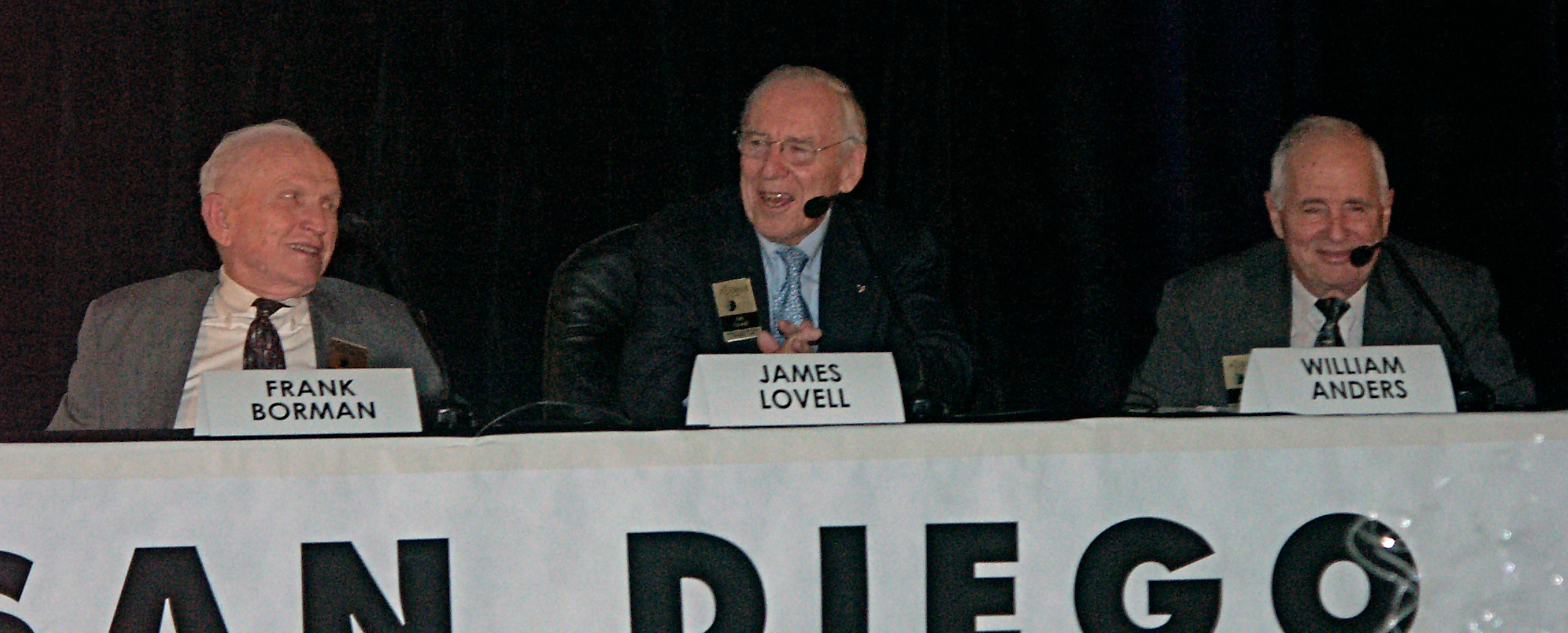 This December 10, 2008 photo shows all three Apollo 8 astronauts together to celebrate the 50th anniversary of Apollo 8. As of June 9, 2024, only Jim Lovell still lives, one of the last six Apollo-era astronauts remaining, along with Fred Haise, Harrison ‘Jack’ Schmitt, Charles Duke, David Scott, and Buzz Aldrin.