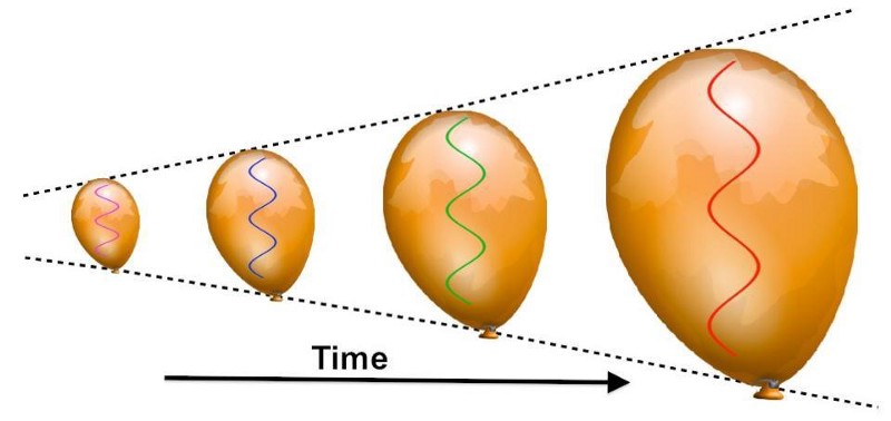 This last point turned out to be in spectacular agreement with our observations, and helped us understand that it was the fabric of space itself that was expanding as time progresses. The reason the light is redder the farther away we look is because of the fact that the Universe has expanded over time, and the light within that Universe gets its wavelength stretched by the expansion. The longer the light has been traveling, the greater the redshift due to the expansion.
