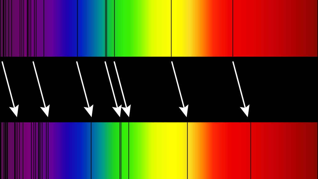 This is what you’d expect if the physics that governed those other galaxies were the same as the physics in ours. Their stars would be made of protons, neutrons, and electrons, and their atoms would obey the same quantum rules that atoms in the Milky Way do. However, there’s a slight difference in the light we receive. Instead of the same atomic spectral lines that we find here at home, the light from the stars in other galaxies displays atomic transitions that are shifted.