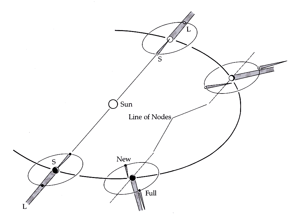 Every two weeks, the Moon migrates about ½° up-or-down relative to the Earth-Sun plane.