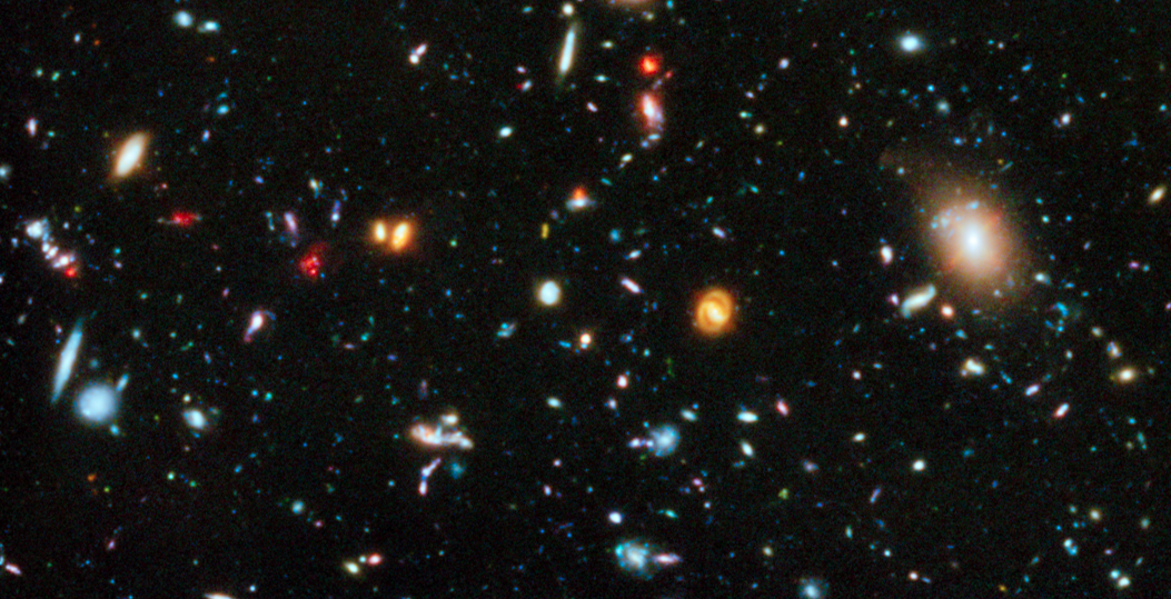 Imaged in ultraviolet, visible and near-infrared light, extrapolating this region to the entire sky indicates that the Universe contains over 170 billion galaxies.
