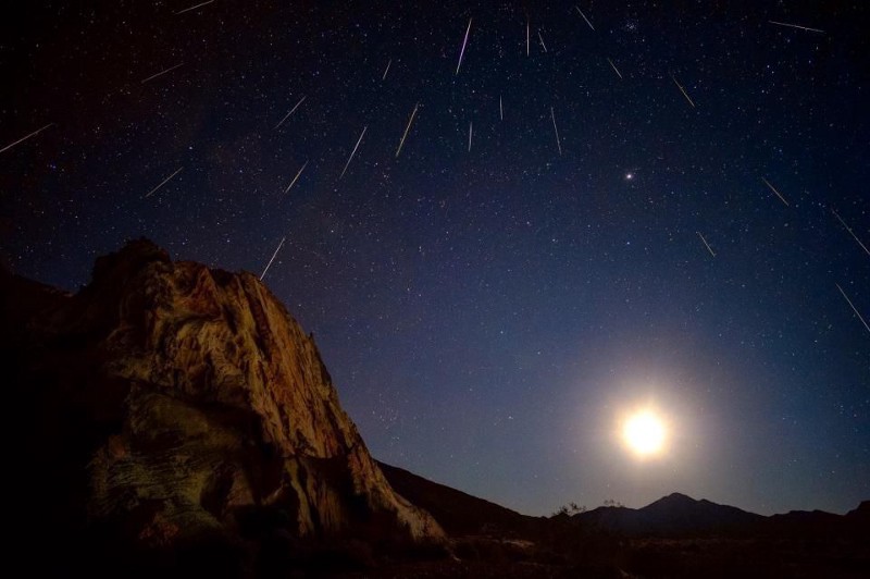 At its peak, the Geminids can unleash nearly 200 meteors per hour under ideal conditions over the entire sky. This composite of a fraction of the sky was taken during the peak of last year’s Geminids.(Starry Earth / Stars4all of flickr)