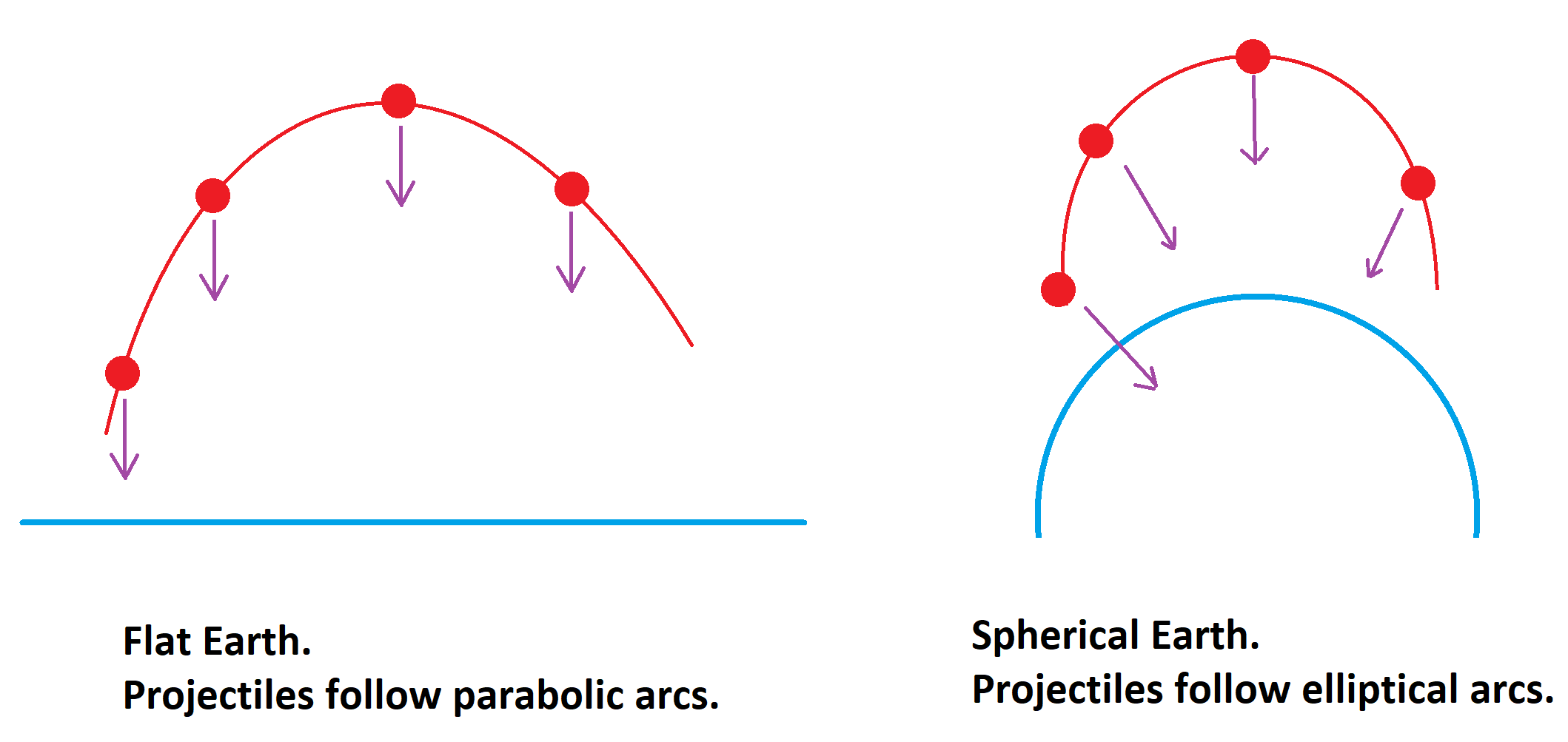 you should no longer treat the Earth’s gravitational field as a constant. Everything is accelerated by the gravity of Earth, but not truly “downward” in any pure, absolute sense. Instead, the gravitational acceleration points toward the center of the Earth, enabling a projectile’s true trajectory — an ellipse — to be revealed.