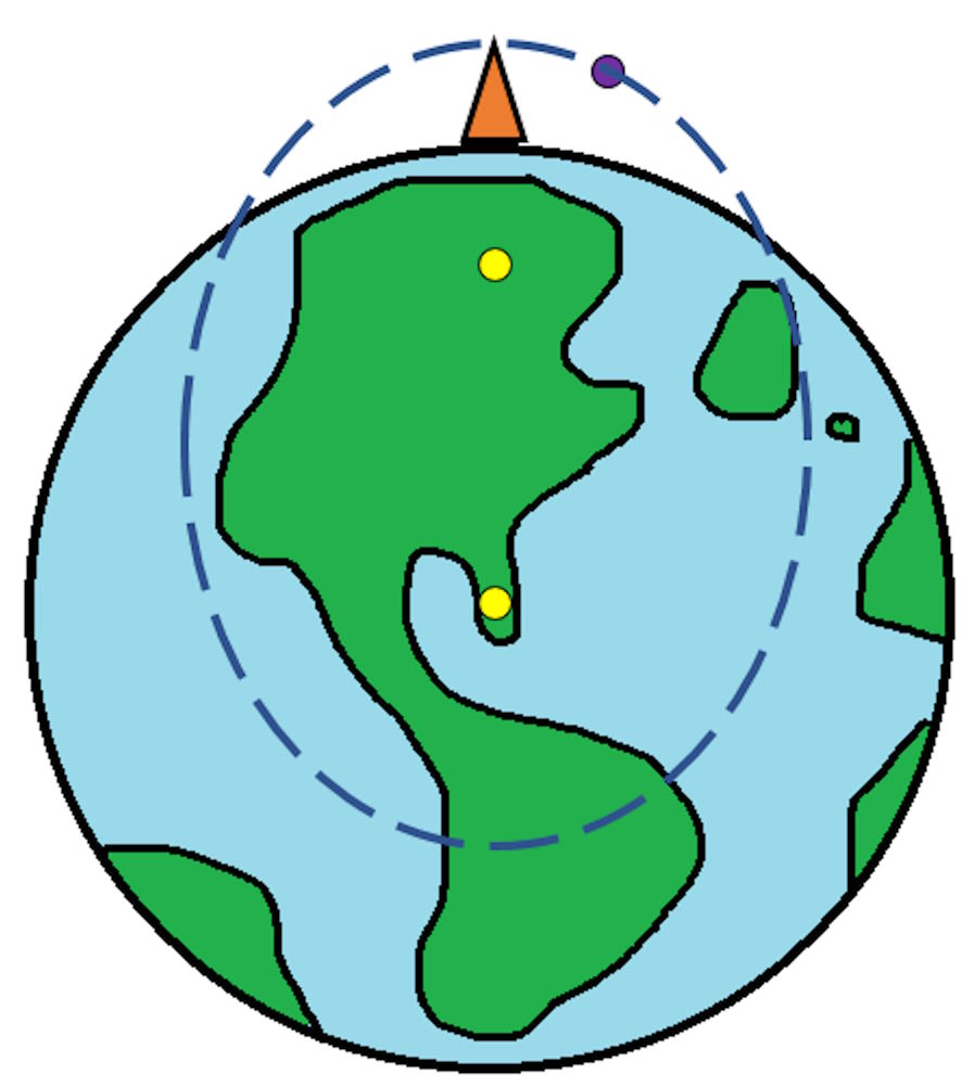 The second approximation, on the other hand, matters tremendously. From any location along its path, a projectile isn’t truly accelerated “straight down” in the vertical direction, but toward the center of the Earth. A projectile that covers the same modest distance of only a few meters in the horizontal direction will experience a difference in angle between what one might perceive as “straight down” versus “toward the center of the Earth,” and that difference again turns out to come into play at the 1-part-in-1,000,000 level. If we want to get technical about it, this is a consequence of the Earth not being flat, but rather having a spheroidal shape.