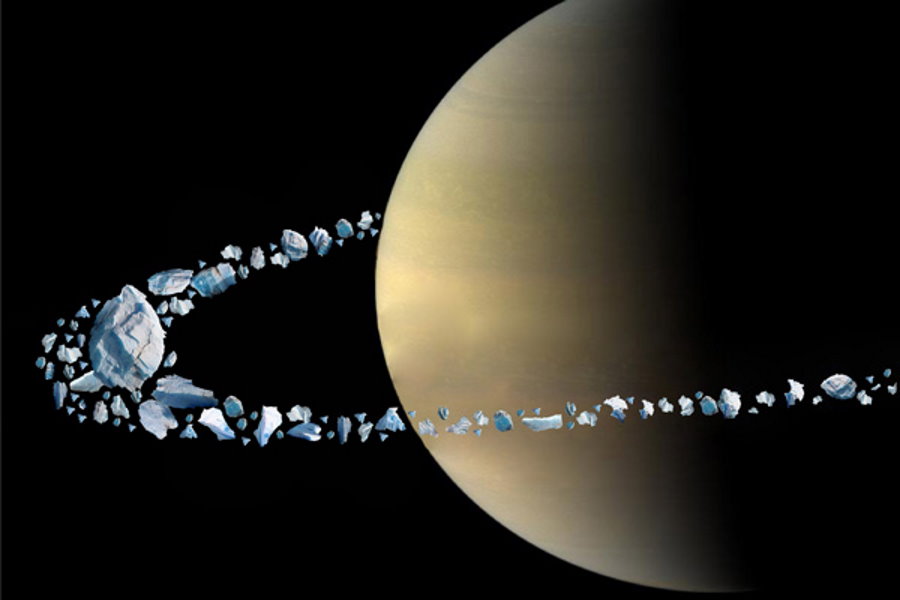 So where, then, did Saturn’s rings come from? How were they created? Although we are only getting a snapshot of the Saturnian system as it exists today, there are some clues that are encoded in a variety of the surviving objects. By looking at them, we can gain a better context for understanding how and when Saturn’s rings may have arisen.