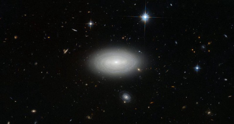 Although a long-exposure, deep image of MCG+01–02–015 appears to show many other galaxies in its vicinity, most are far more distant (and a few are closer), but none are within 100 million light-years of the major galaxy itself. (ESA/HUBBLE & NASA AND N. GORIN (STSCI); ACKNOWLEDGEMENT: JUDY SCHMIDT)