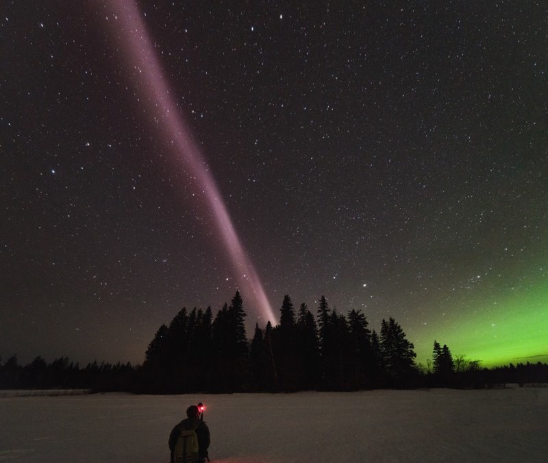 Aurora-watching observers in Alberta, Canada, routinely saw a unique purple/green light ribbon in the sky.
