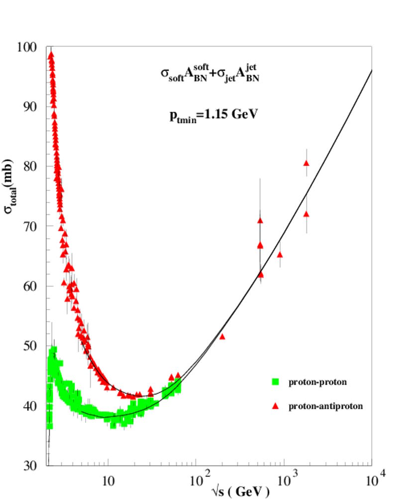 Take a proton and its antimatter counterpart, for example: the antiproton. This was the bread-and-butter of the world’s most powerful particle accelerator and collider just prior to the launch of the Large Hadron Collider at CERN (which collides protons with protons instead): the TeVatron at Fermilab. When you launch a proton and an antiproton at one another at a variety of speeds/energies, you might be surprised at what you measure. The cross-section that you find, experimentally, is not well-represented by just a single value, which is what you’d expect if protons and antiprotons behaved like billiard balls.