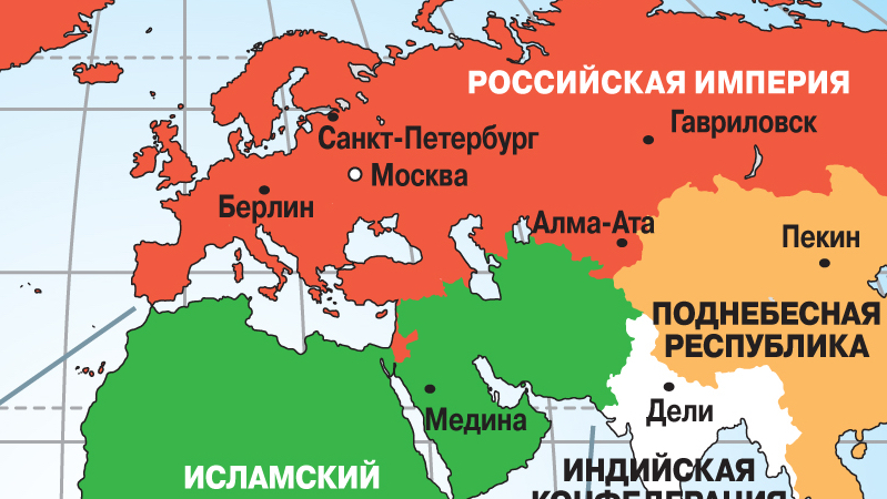 • an Islamic Caliphate, occupying the whole of Africa, the Arabian Peninsula, Syria, Iraq, Iran, Armenia, Turkmenistan, Uzbekistan, Pakistan and Indonesia;