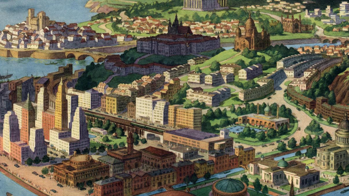 1. Modern Airfield2. Mount Holmen Koll, Oslo3. Acropolis, Athens4. Helsinki Hospitals, Clinics5. Old Town and Castle, Antibes, France6. White Wooden Houses of Carolina7. Governmental Palace, Prague8. Fitzwilliam Square, Dublin9. Sacré Coeur, Paris10. King’s College, Cambridge11. Georgian Houses of Bath12. Edinburgh Castle13. Maritime Quarter, NY14. Municipal Buildings15. Modern Houses, Finland16. Business Section, NY17. Street of Steps, Valetta18. Tivoli Gardens, Copenhagen19. Elevated Railway, NY20. Broadway, NY21. Palazzo Vecchio, Florence22. Moscow Underground23. Art Gallery24. St Paul’s Cathedral, London25. La Scala, Milan26. Piazza della Signoria, Florence27. Paris Boulevards28. Canals of Venice29. Library30. Cultural Centre31. Stockholm Waterways32. Gothenburg Concert Hall33. St Stephen’s, Vienna34. Museum