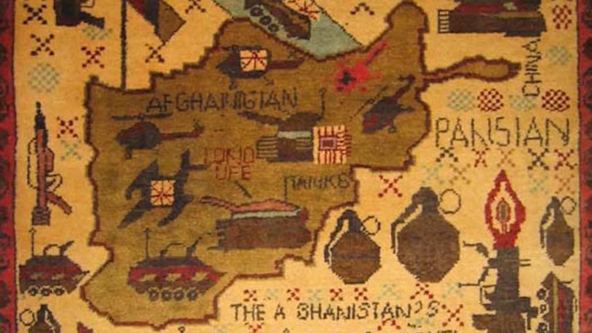 The Afghan War Rug is a modern reinterpretation of an age-old art. Where the regular oriental carpet has an abstract design, these rugs are figurative, including tanks, guns and other weapons, and usually show a map of Afghanistan. They also deal with a very specific subject matter – the troubled recent history of Afghanistan.