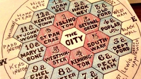 That complexity, and the cabbies’ Knowledge, put passengers at the risk of being overcharged, the Victorians feared. Mid-19th century, even before the current Examination System was instituted (in 1865), a Mr John Leighton devised a system to prevent passengers from being taken for a proverbial as well as a literal ride. Leighton, a Fellow of the Society of Antiquaries, published a scheme to divide London in a number of hexagonals, specifically aimed at preventing overcharging by cab drivers.
