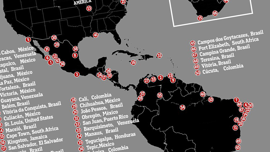 The annual ranking of the world’s deadliest major cities (with a population of at least 300,000) is the work of the Mexican anti-violence think tank Seguridad, Justicia y Paz, which draws three conclusions from the latest figures: