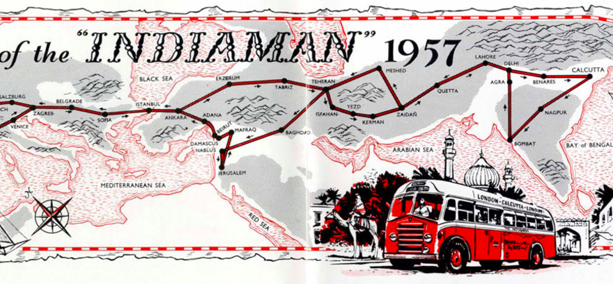 In 1957, the pioneering Indiaman bus made the first of many round trips between London and Calcutta (image taken here from the AEC Gazette, as quoted by The Hippie Trail)
