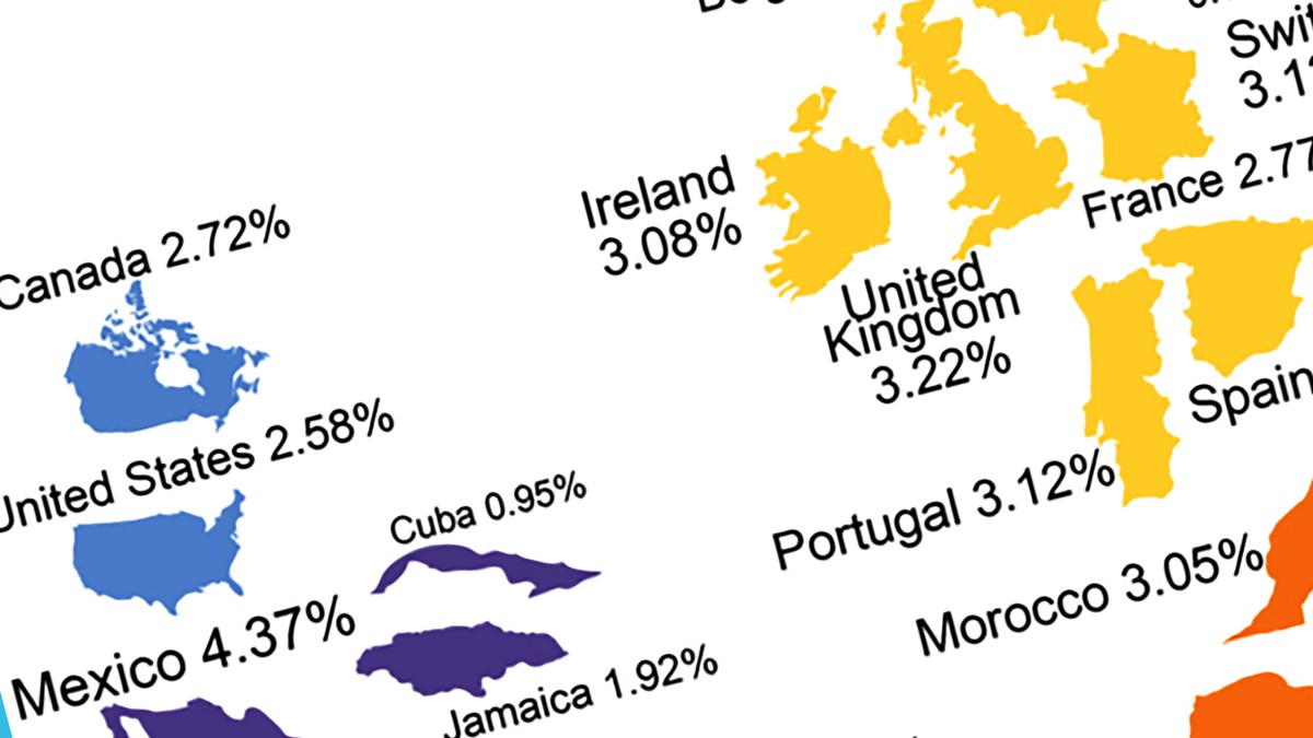If you get the impression that Africa looms even bigger on this map than on a normal one, that is no coincidence: eight of the other nine countries in the CID’s Top 10 are located in Africa — eastern Africa, in the main. In descending order: Uganda (6.04 percent), Kenya (6.0 percent), Tanzania (5.96 percent), Egypt (5.83 percent), Madagascar (5.78 percent), Senegal(5.77 percent), Malawi (5.66 percent), and Zambia (5.55 percent).