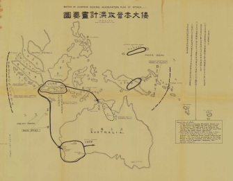 The map was forwarded to the Chiefs of Staff by the Australian legation in Chongqing, at the time the provisional capital of Chiang Kai-shek’s Chinese nationalist forces. The legation got the map from Admiral H.C. Yang, Nationalist China’s director of military intelligence.